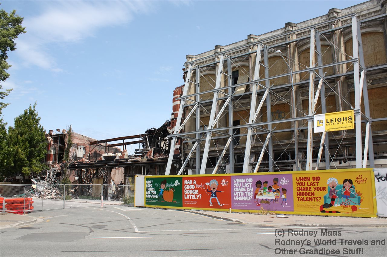 Next up are the number of holes where buildings used to stand. Some of these have been 'remediated' as best as I guess they can for now, and some of them have just had the rubble removed, but the remains of the basement structure left.